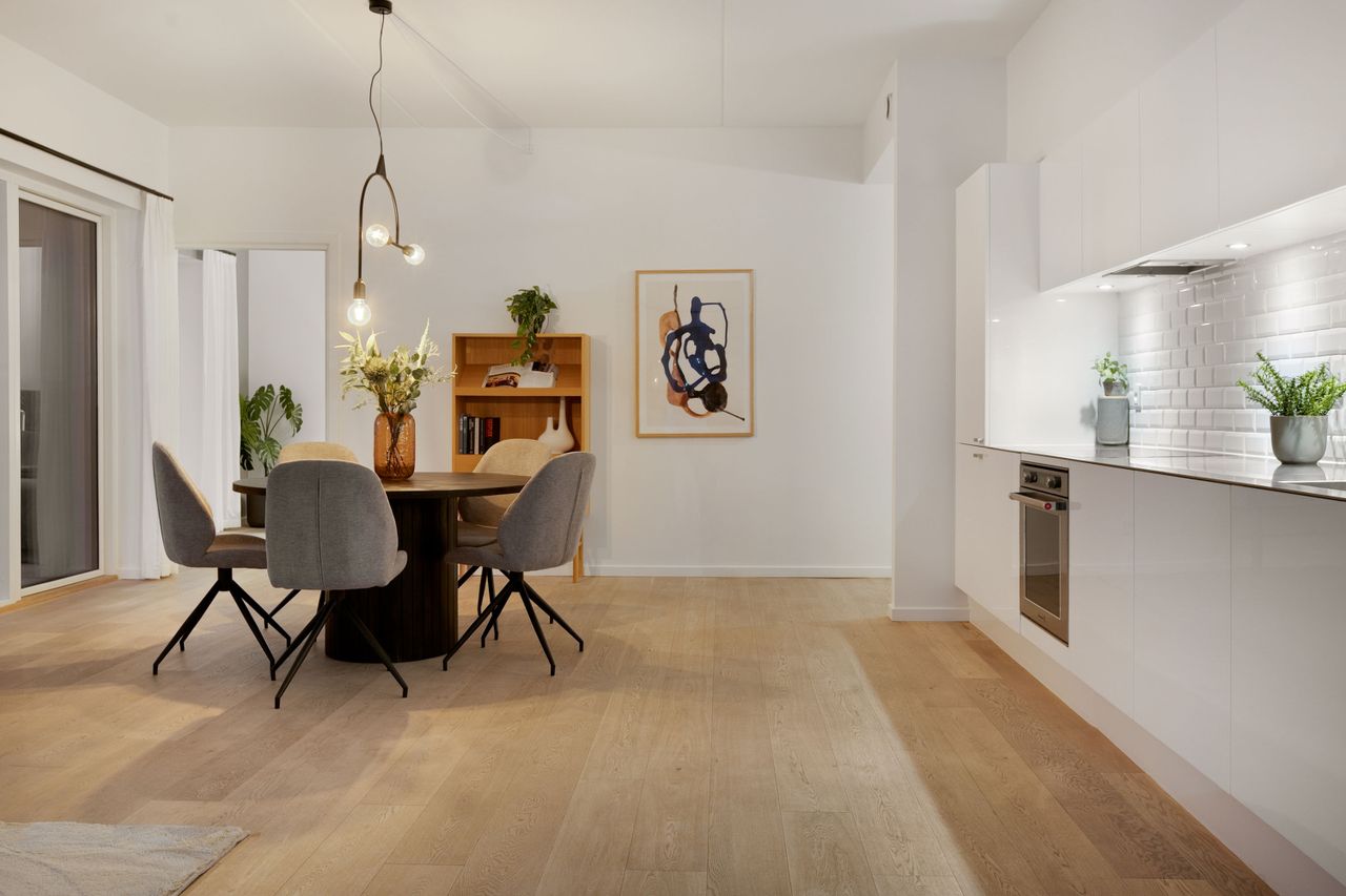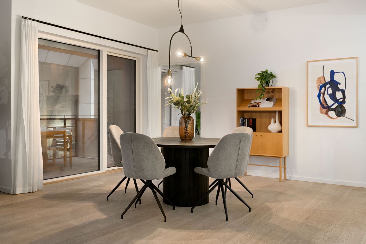 Denne moderne 3-værelses lejlighed på 118 m² byder på et fantastisk lysindfald og et stilrent, internationalt udtryk. Planløsningen er gennemtænkt og skaber en naturlig sammenhæng mellem opholdsrum og værelser, hvilket giver en rummelig og behagelig atmosfære. Her får I en bolig, der føles både urban og rolig på samme tid – ideel til par, den lille familie eller jer, der ønsker ekstra plads midt i byen. Som en ekstra bonus sælges boligen uden bopælspligt, hvilket giver en sjælden fleksibilitet.